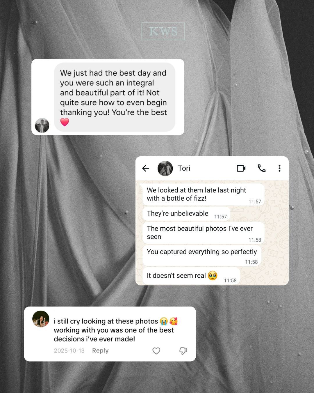 Across my career I’ve been celebrated on top UK wedding blogs including Bridal Musings, Love My Dress, and Rock My Wedding, where I was also named among the Best Weddings of 2022, but my biggest achievement will always be capturing the photos that immortalise my couples’ vision in the way they always wanted.